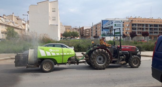 Durant el dia d'ahir, aquests tractors van estar pels barris de Campament, Santa Rita, Alborgí i Centre, on cadascun d'ells va polvoritzar 4.000 litres d'aquesta composició desinfectant.