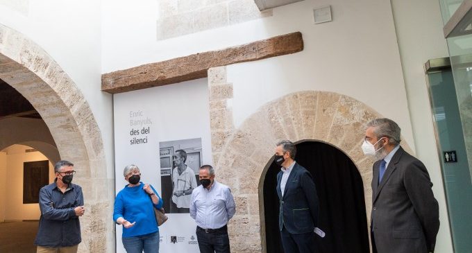 El director del Consorci de Museus de la Comunitat Valenciana, José Luis Pérez Pont, i el president de la Fundació Chirivella Soriano, Manuel Chirivella, acompanyats pels comissaris, Francesc Vera i Manel Baixauli i la vídua de l’artista, Rosa Urenya han presentat aquest divendres la mostra ‘Des del silenci’, al voltant de l’obra del pintor valencià Enric Banyuls (Corbera, 1954-2018).