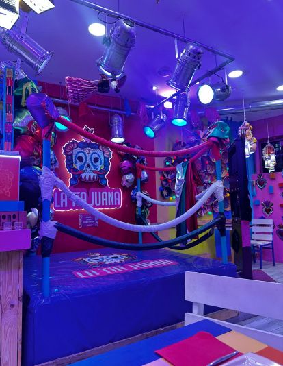 Este restaurante temático ofrece platos para compartir en un ambiente vibrante lleno de color, con un ring de boxeo decorado con capas y máscaras. Descubre el auténtico sabor mexicano en su local de la Calle dels Cavallers, número 42, en Ciutat Vella.