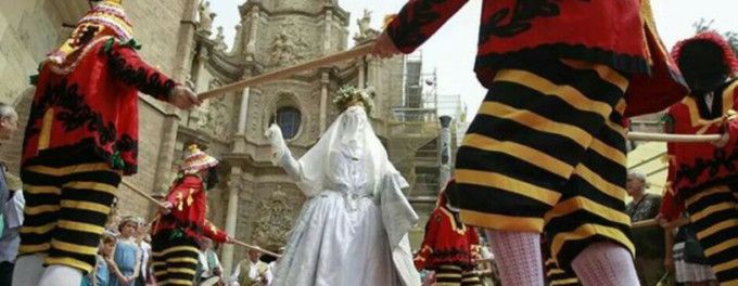 Una festividad que, sin duda, está marcada por la tradición. Prueba de ello son algunos de los actos multitudinarios que Valencia acoge a lo largo de estos días, y que llaman la atención de todo aquel que se acerca a disfrutar de la festividad del Corpus: La ‘Cabalgata del Convite’, en la que los asistentes pueden disfrutar de elementos tan característicos, como el ‘Capellà de les Roques’, que representa a la Iglesia y su misión en invitar a la gente a ser partícipe de esta fiesta; las tradicionales ‘dansaes’, entre las que destaca ‘La Moma‘, un hombre, vestido de mujer, con una túnica blanca y con la cara cubierta por un pañuelo blanco, que lucha contra los siete pecados capitales; el baile de los ‘Nanos i Gegants’, un rito que se remonta al año 1588 y en el que se representa un antiquísimo baile; y, por supuesto, la esperada ‘Poalà‘, en la que los miembros de la Asociación Amics del Corpus, y algún que otro despistado, acaban empapados por los cubos de agua, que se tiran desde los balcones, a su paso por las calles Caballeros y Avellanas.