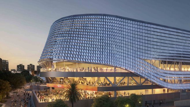 De hecho, en el mes de diciembre, los trabajos se centraban en la cobertura de la fachada con 8.600 lamas de cerámica, que simulan la textura de un balón de baloncesto, y que permitirán tanto un aislamiento térmico y acústico eficiente, como bloquear la incidencia directa de la luz solar, contribuyendo a crear un ambiente interior más confortable.