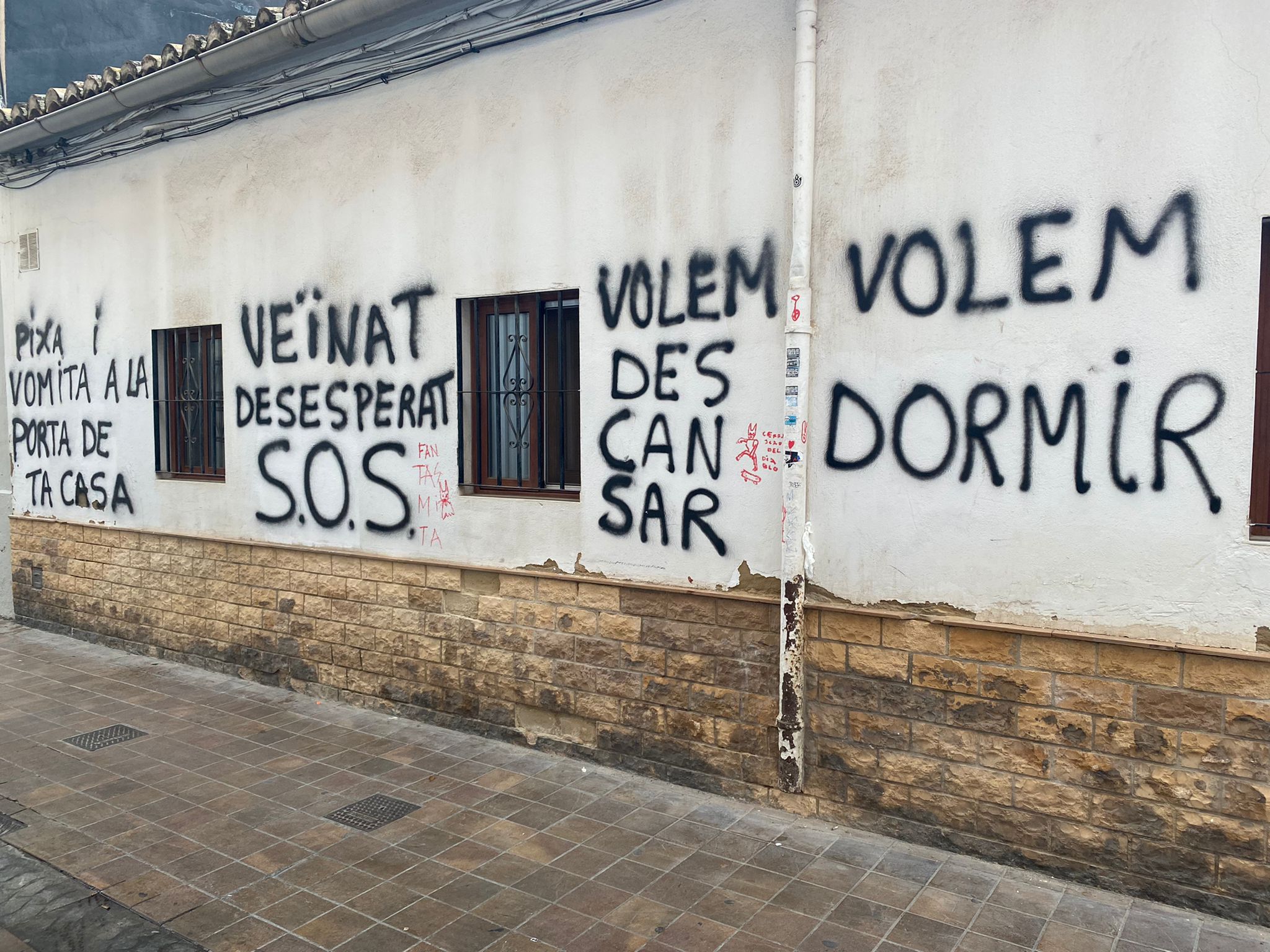 Catalá ha assenyalat que són molts els veïns de Plaza Hondures, Montolivet, Marxalenes i Benimaclet que ens estan traslladant la seua situació límit perquè no poden aguantar un altre cap de setmana sense poder descansar per culpa dels botellons. Prova d'això són les pintades amb les quals ha començat el dia una casa de Benimaclet on els veïns criden un SOS.