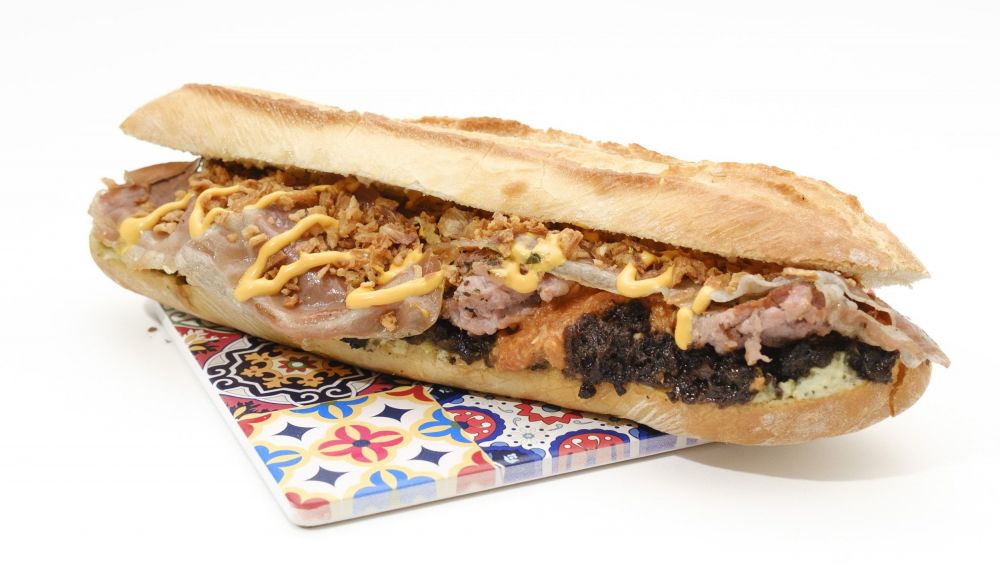 9- La Taula de Llíria (Carrer Sant Vicent Ferrer, 12): Entrepà de sabors tradicionals amb sobrassada local, cuixa de pollastre confitada en oli d'oliva, formatge brie i cruixent de ceba i all porro.