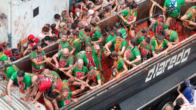 El president de la Generalitat, Carlos Mazón, ha participat per segon any consecutiu en la Tomatina de Buñol on ha destacat el seu potencial com a reclam turístic internacional i ha subratllat el seu caràcter únic.