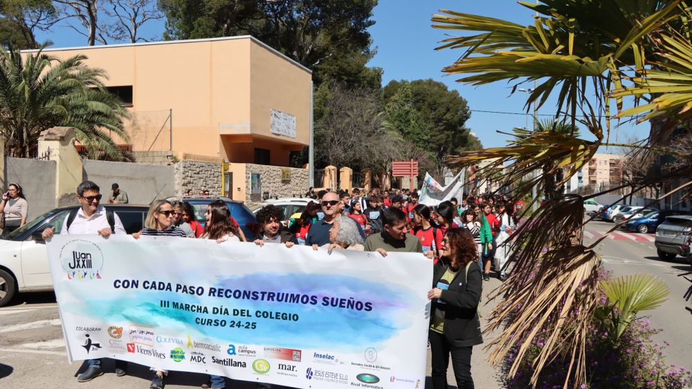 Amb motiu de la celebració del Dia del Col·legi, el centre educatiu Joan XXIII de Burjassot va celebrar, divendres passat 27 de març, una marxa solidària que, en 2025, ha aconseguit la cinquena edició consecutiva. Sota el lema "Amb cada pas construïm somnis", tots els alumnes i alumnes del col·legi concertat d'Infantil i Primària, comptant també amb el suport dels seus companys de Secundària i de l'alumnat de 6é del Col·legi San Miguel Arcàngel, van abandonar per una estona les aules per a eixir al carrer i caminar, al costat dels seus educadors i educadores, en una multitudinària marxa que va omplir d'esperit solidari l'Avinguda de Pi i Margall. L'alcalde de Burjassot Rafa García, juntament amb la regidora d'Educació, el regidor de Cultura i Joventut, Javier Naharros i el regidor de Serveis Municipals, Manuel Pérez Menero, també van participar, marxant en la capçalera de la marxa, juntament amb els responsables del centre educatiu.