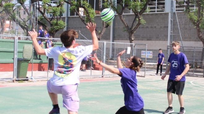 Un grup de joves juga un partit de colpbol