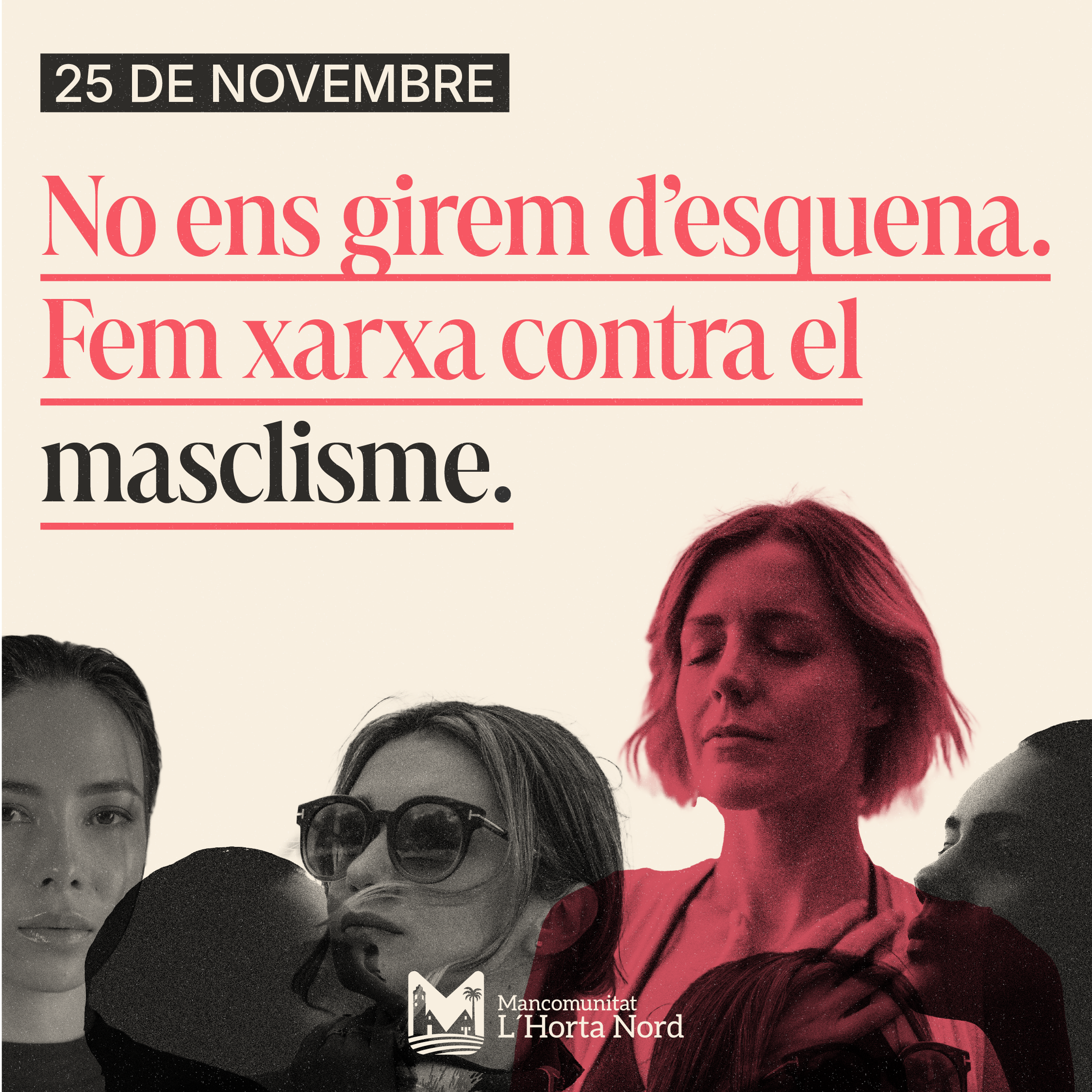 Amb motiu del 25 de novembre, Dia Internacional de l'Eliminació de la Violència contra la Dona, la Mancomunitat l'Horta Nord llança una nova campanya de sensibilització sota el lema "No ens girem d'esquena. Fem xarxa contra el masclisme". Esta campanya busca mobilitzar a tota la comunitat, apel·lant al treball en xarxa i al compromís conjunt per a posar fi a la violència de gènere en el territori.