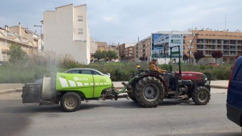 Durant el dia d'ahir, aquests tractors van estar pels barris de Campament, Santa Rita, Alborgí i Centre, on cadascun d'ells va polvoritzar 4.000 litres d'aquesta composició desinfectant.