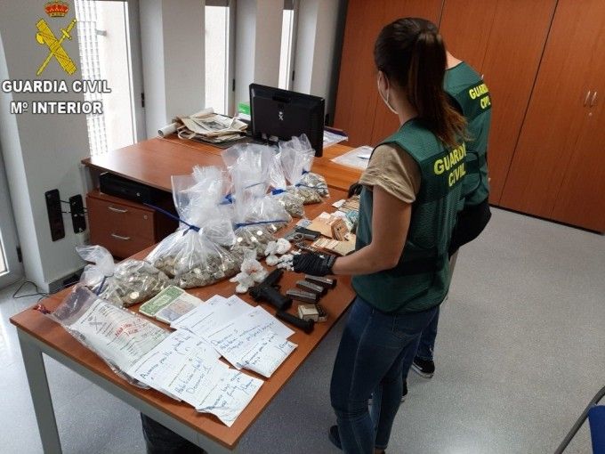 Els agents han intervingut 38 grams d'heroïna, uns 10 quilos de marihuana, 45 grams d'haixix, més de 4.000 euros, un revòlver, una pistola d'aire comprimit i un ganivet de caça