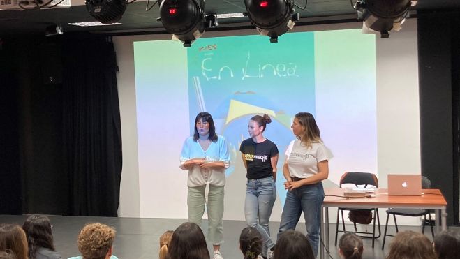 L'obra teatral “En línia”, de la companyia “Contrahecho”, gira entorn dels riscos de fer un mal ús de les pantalles, les xarxes socials i les aplicacions mòbils i oferix als joves les pautes per a fer un ús adequat. La representació interactiva permet al públic adolescent participar endevinant finals, desfent embolics i jugant amb les actrius al que elles proposen. A més, al final de cada peça, s'obri un col·loqui on el diàleg sobre la temàtica i les experiències que compartix l'alumnat de manera espontània completen la proposta.