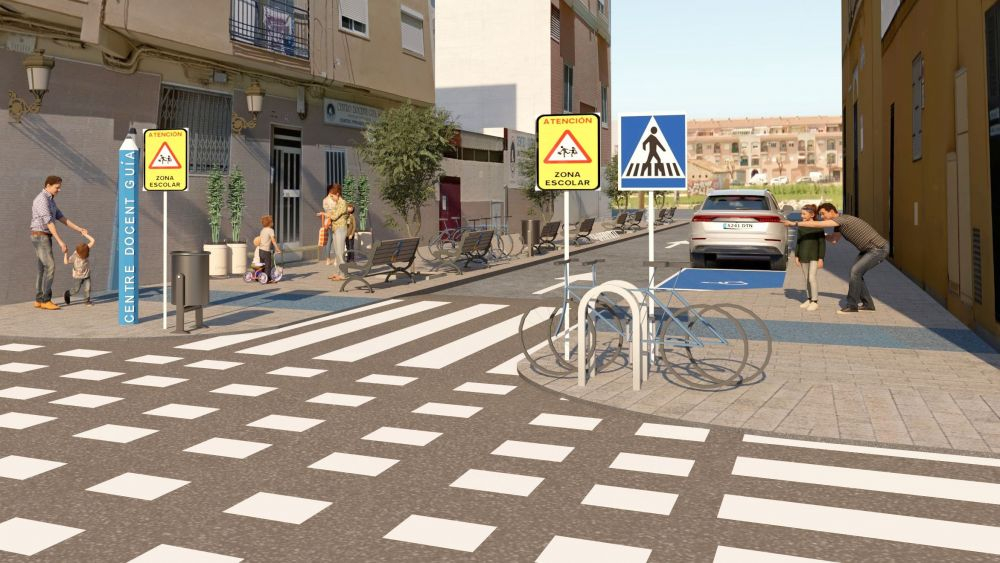 Amb la iniciativa dels Camins Escolars es prioritzaran els recorreguts transeünts, s'alentirà el trànsit confrontant i es potenciaran els espais per als vianants i de reunió entorn dels centres escolars. Així mateix, s'incrementarà el mobiliari urbà per a afavorir l'estada de la ciutadania en l'espai i s'adequarà la senyalització viària.