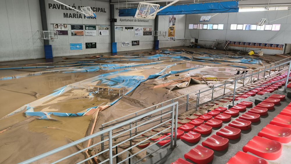 Estat després de la riuada del pavelló esportiu municipal de Benetússer