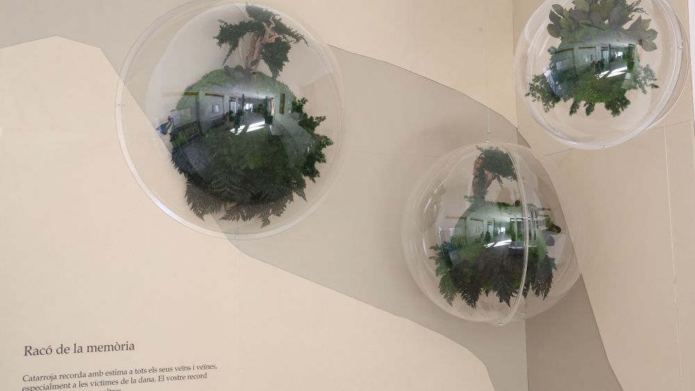 El “Racó de la Memòria” s'articula al voltant d'una estructura de la que pengen dos esferes de metacrilat que protegixen les escultures. Estes, fetes a mà, recreen singulars planetes naturals en diferents tipus de vegetació preservada, com ara molses i plantes, que no necessiten reg ni manteniment per a mantindre el seu color, plasticitat i textura, com si estigueren vives.