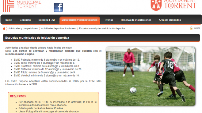 La Fundació Esportiva Municipal ofereix tota la informació en la seua pàgina web oficial i xarxes socials https://www.fdmtorrent.com/inicio.aspx