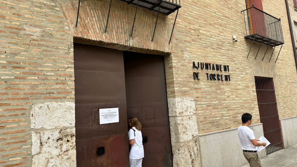 Dues persones en els voltants d'una edifici de l'Ajuntament de Torrent