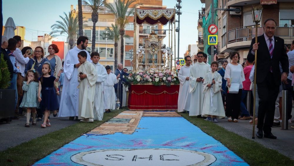 Este tapís, confeccionat amb flors naturals, arena de colors i de gran valor artístic i simbòlic, s'instal·la en la Plaça Major, just enfront de la Casa de la Cultura, i constituïx el punt més destacat de l'itinerari processional. Per ell passarà la Custòdia en el seu recorregut solemne, sent un tribut visual efímer que enaltix el pas del Santíssim Cos i Sang de Crist.