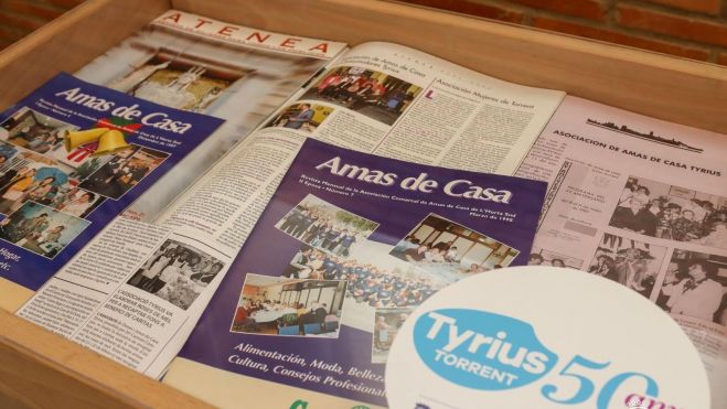 L'Associació Valenciana de Mestresses de casa i Consumidors Tyrius ha inaugurat este matí una exposició fotogràfica en l'Espai Sant Gregori amb la qual commemora els seus 50 anys de trajectòria en la capital de l'Horta Sud. La mostra, organitzada per la delegació d'igualtat que dirigix Amparo Chust, podrà visitar-se en horari de mercat fins al pròxim 4 de juny, repassa la intensa activitat desenvolupada per l'entitat al llarg de mig segle, posant de manifest el seu compromís amb el benestar de les dones i la societat torrentina en general. A l'acte d'inauguració han assistit nombroses sòcies, així com l'alcaldessa, Amparo Folgado, la delegada d'Igualtat, Amparo Chust i la presidenta, Mari Carmen Campos.