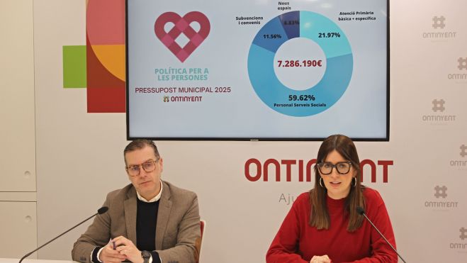 L’Ajuntament d’Ontinyent reforçarà l'any vinent en un 25% la despesa en personal per a l’atenció dels programes municipals de serveis socials, arribant este concepte als 4.344.412. Així s’explicava este dimecres en una roda de premsa en què la regidora de l’àrea, Paula Soler, i el regidor d’Hisenda, Juan Pablo Úbeda detallaven les partides de l’àrea de Política per a les Persones, dotada en total de més de 7,2 milions d’euros al pressupost per a 2025.