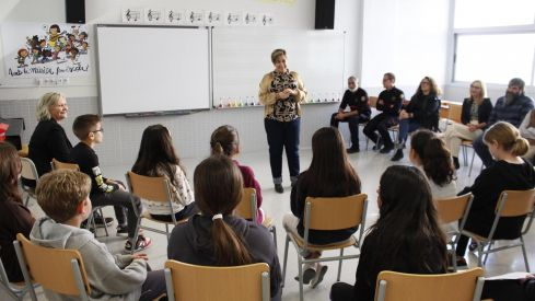 Raquel Tamarit visita un centre educatiu a Gandia per a presentar el material del projecte 'Bombers a l'Escola'
