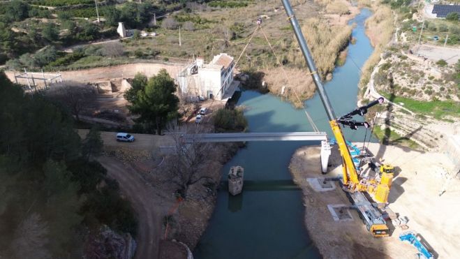 La Vicepresidència Tercera i Conselleria de Medi Ambient, Infraestructures, Territori i de la Recuperació avança en les obres de reconstrucció del pont sobre el riu Túria en el terme municipal de Bugarra i afronta la fase final amb la col·locació de les bigues prefabricades que conformen el tauler de la nova infraestructura, una fita clau dins del procés constructiu.