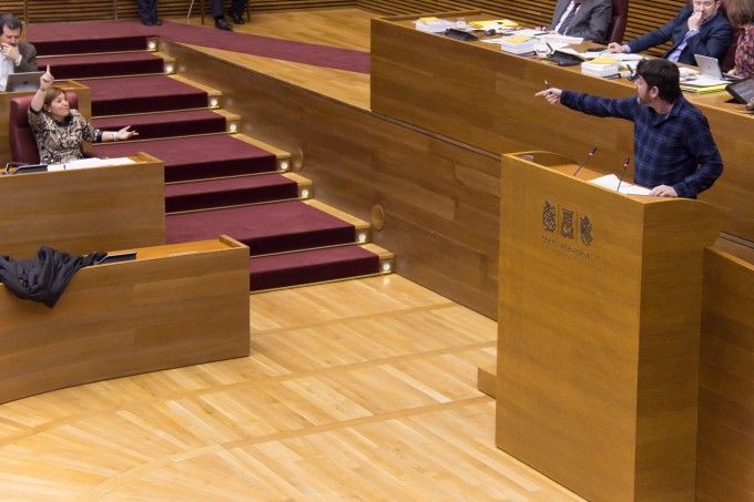 Josep Nadal (Compromís) en una discussió amb Isabel Bonig (PP) | P. Plaza