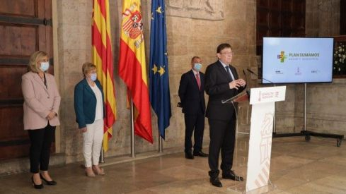 El president de la Generalitat Valenciana, Ximo Puig, ha presentat aquest matí el "Pla Sumem. Salut + Economia", que facilitarà la vacunació en les empreses.En aquesta primera etapa hi haurà 21 punts de vacunació en empreses de la Comunitat Valenciana, arribant a uns 50.000 treballadors i treballadores. El procés s'iniciarà la setmana del 7 al 13 de juny i s'atendran els grups d'edat establits per la Conselleria de Sanitat sense cap privilegi temporal. "Les empreses fan una aportació important quant a centre i personal sanitari i la Conselleria aportarà les dosis, les xeringues i el curs de formació", ha indicat el cap del Consell.Per al president, amb aquesta iniciativa "accelerem el procés i la capil·laritat per a afavorir a treballadors i empreses eixa disponibilitat d'avançar més ràpidament en la vacunació. Tant de bo tinguérem més dosi per a poder avançar més".L'acord aconseguit hui servirà "per a accelerar al màxim el procés de vacunació, el pas imprescindible per a la normalització", destacava Puig. El president ha recordat que en la Comunitat Valenciana "estem més de 10 setmanes per davall de 50" en incidència acumulada, "però encara estem en estat de prevenció per l'obertura progressiva" pel que ha volgut traslladar un missatge de prudència: "no podem desfer tot el camí que ja hem caminat".Ximo Puig ha recordat que "hi ha una voluntat manifesta de cooperació publicoprivada en la Comunitat Valenciana. Durant tota la pandèmia hi ha hagut una voluntat d'acords permanents entre els agents socials, els sindicats i la CEOE amb la Generalitat, donant resultats molt positius en la manera d'enfocar l'eixida d'aquesta crisi".Per al president "aquesta xarxa que anem creant la podem aplicar a altres conceptes i a altres idees de futur. D'aquesta crisi hem d'eixir amb una metodologia de treball més potent. Fins i tot més enllà d'aquest primer objectiu plantegem un ecosistema favorable a la cooperació".