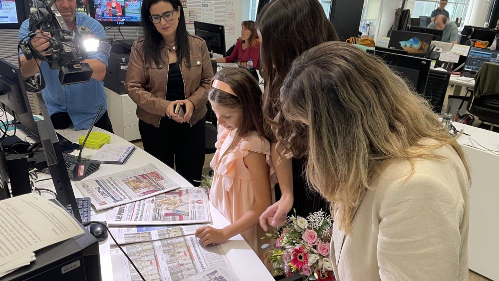 Carmen i Marta han rebut floretes en passar per la redacció dels informatius d’À Punt. L’anècdota divertida de la visita l’ha protagonitzada la fallera major infantil quan els ha demanat amb simpatia als meteoròlegs de l’Oratge si poden fer alguna cosa per tal que al març el bon temps les acompanye.