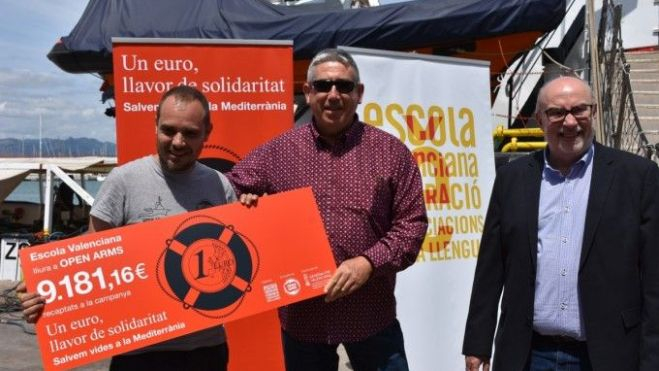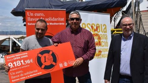 «Salvem vides a la Mediterrània» és el lema de l’onzena campanya d’Escola Valenciana «Un euro, llavor de solidaritat», que durant sis mesos ha recaptat 9.181,16€ per al projecte d’ajuda humanitària i emergència de l’ONG Proactiva Open Arms. Aquest fons ha sigut possible amb el compromís de les escoles valencianes en el foment de la conscienciació i la cultura de la pau. Hui, el port de Borriana ha sigut l’escenari on Escola Valenciana – Federació d’Associacions per la Llengua ha lliurat el fons aconseguit a Open Arms.