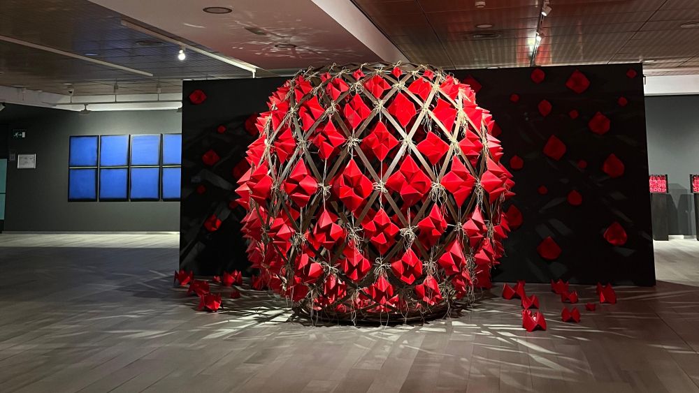 L'exposició està presidida per la impactant instal·lació d'una estructura esfèrica de ferro que recorda a un rusc, que conté centenars de peces de paper i entenimentada, elements que establixen un diàleg entre diferents materials i interactuen amb l'espai per a evocar l'emoció de la creació artística usant les formes i els colors per a construir profunditat i evocar transparència. Una peça que atrau totes les mirades i convida al públic a continuar aprofundint en l'univers creatiu de la valenciana.