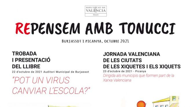 En la trobada del 22 d'octubre a Burjassot, dirigit principalment a professors de diferents nivells, associacions de pares d'alumnes i a associacions juvenils, tindrà lloc la presentació del llibre de Tonucci 'Pot un virus canviar l'escola?'. L'autor italià analitzarà com ha afectat la Covid-19 al sistema educatiu, així com les oportunitats derivades de la pandèmia.