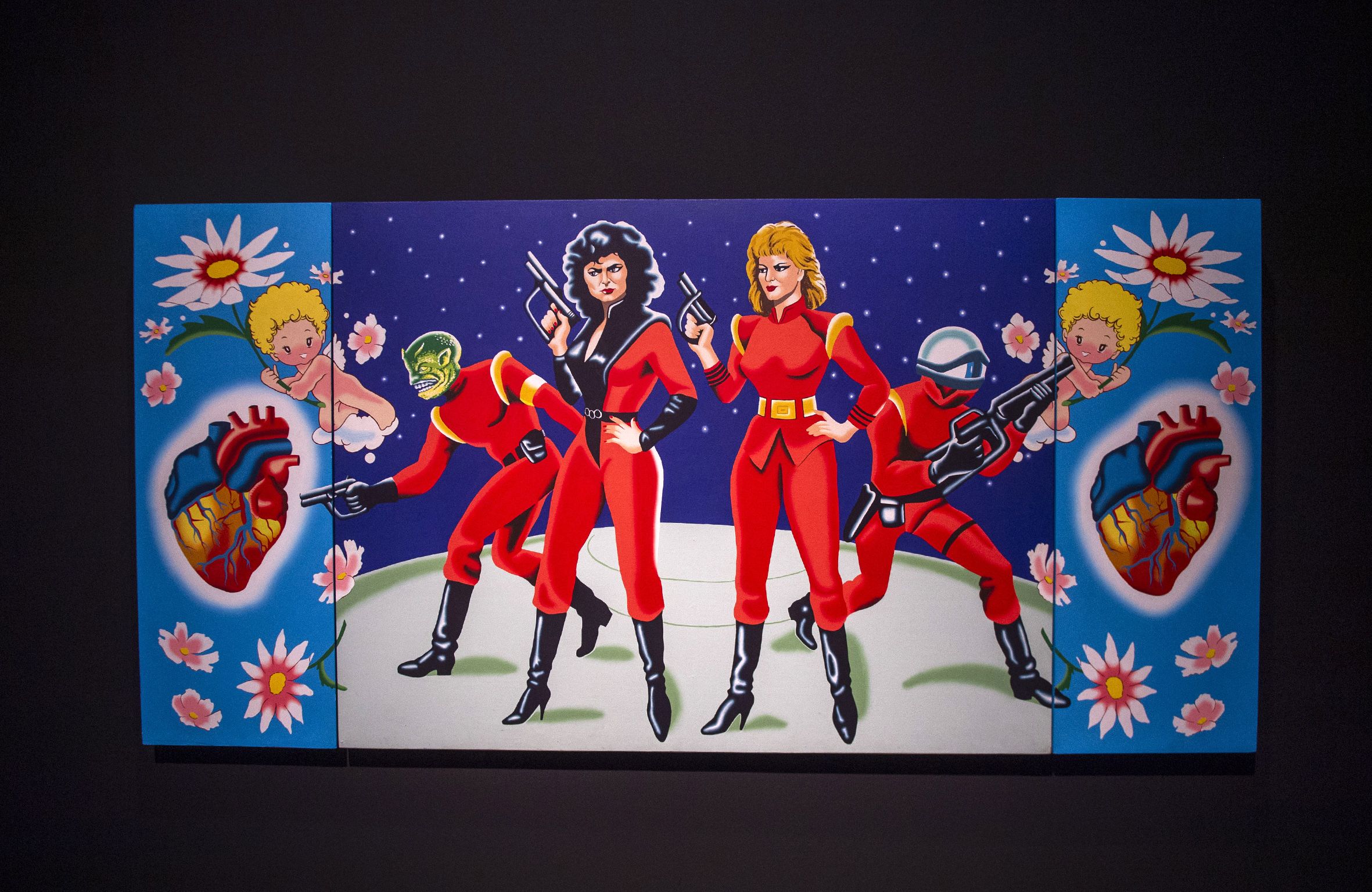 “La gent estava protestant per eixa absoluta propaganda -continua Beguiristain- i Cari i Cuqui fan exactament el mateix d'una manera no sols molt valenciana, també molt espanyola i universal, estan fent una crònica del seu temps, dels anys 80 i 90”. La comissària ha explicat també que els quadres d'Equipo Límite, “a més de ser divertits, tenen una mescla d'imatge i text dins i fora del llenç, per això cal estar atent al que lliges i al que veus”.