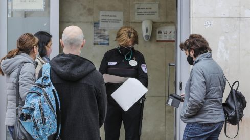 Un grup de persones espera fora d'una oficina de Labora. Imatge: Rober Solsona - Europa Press