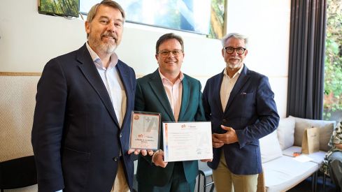 El director de la Iniciativa efr, Roberto Martínez, va entregar l’acreditació al director de Persones i Benestar de Consum, Pedro Hernández Quiroga, després de la taula redona “Viure millor, liderar diferent”, organitzada la setmana passada per la Iniciativa efr coincidint amb la celebració del Dia de la Salut Mental.