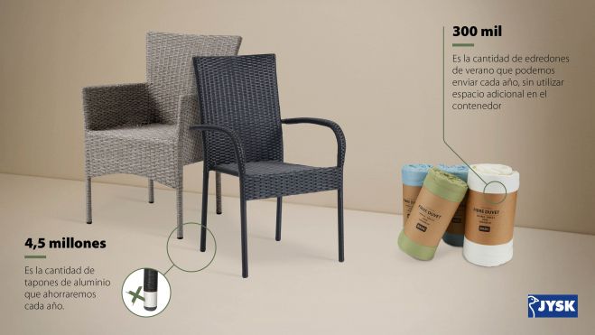 Esta primavera, JYSK implementarà noves iniciatives de producció i embalatge que reduiran l'ús d'alumini en 22 tones i l'espai de càrrega necessari equivalent a 40 contenidors d'enviament a l'any.