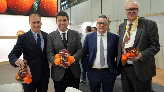 El cap del Consell s'ha desplaçat a la Fira Mundial del Comerç Fruita Fresca 'Fruit Logística 2024' a Berlín per a defendre els interessos i mesures que sol·licita el sector agrari de la Comunitat Valenciana. En concret, estan demandant accions de reducció de la burocràcia, el control de la competència deslleial de tercers països, la reciprocitat, la simplificació d'ecorrègims de condicionalitat reforçada de la Política Agrària Comuna (PAC), la imposició del quadern digital, l'assessorament en normatives en fertilització o la gestió integrada de plagues, entre altres.