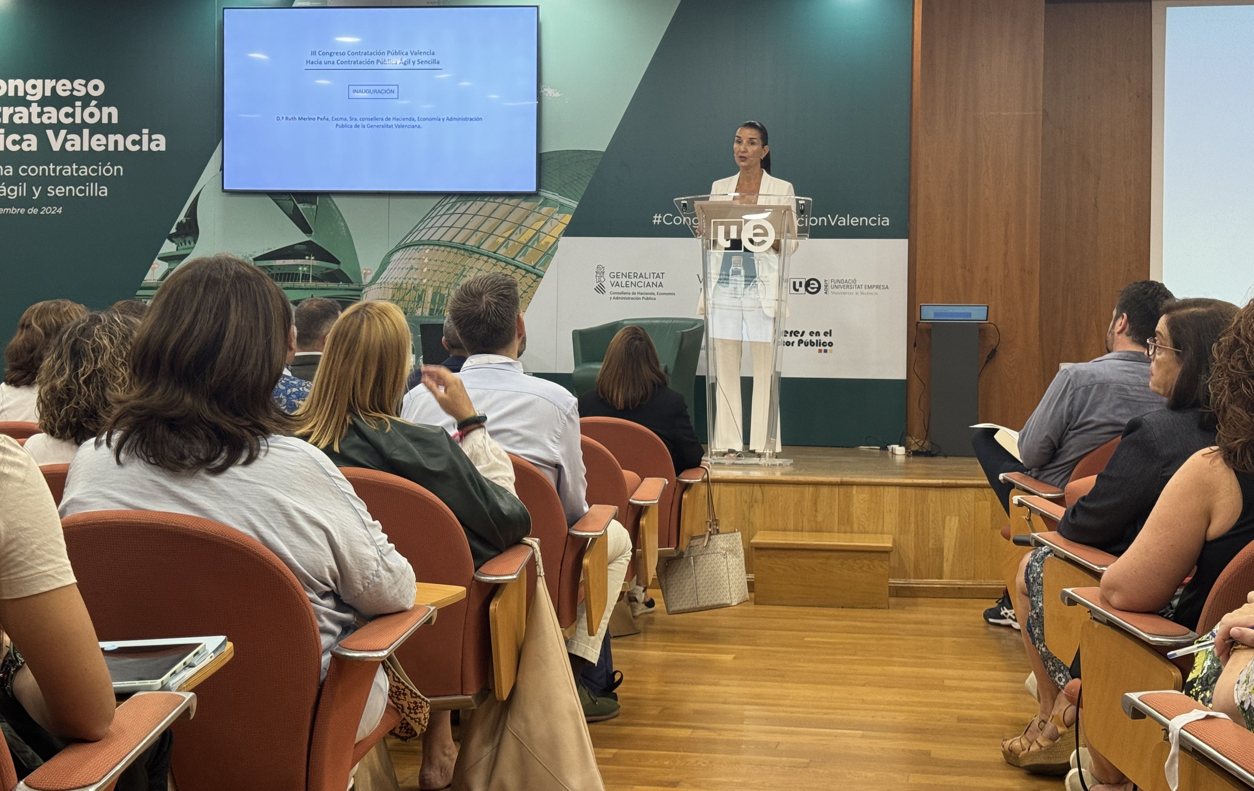 Ruth Merino ha realitzat estes declaracions durant la inauguració del 'III Congrés de Contractació Pública València. Cap a una contractació pública àgil i senzilla', que se celebra a València els dies 26 i 27 de setembre, organitzat per la Fundació Universitat-Empresa de València (ADEIT), en col·laboració amb la Conselleria d'Hisenda, Economia i Administració Pública.