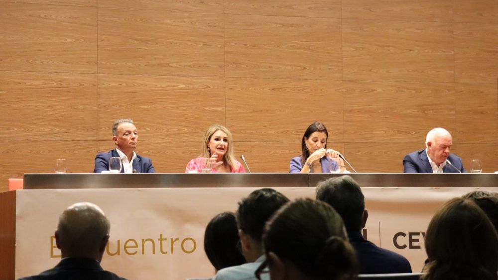 La consellera d'Innovació, Indústria, Comerç i Turisme, Nuria Montes, davant representants de la Confederació Empresarial de la Comunitat Valenciana (CEV)
