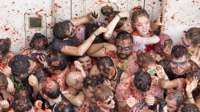 Cada último miércoles de agosto, Buñol se transforma en el escenario de una guerra festiva donde kilos de tomates vuelan por los aires