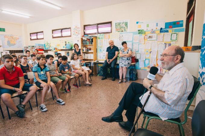 El poeta ha compartit experiències i passió per la poesia amb els educands, en companyia del diputat de Cultura, Xavier Rius, i la cap de la Unitat de Normalització Lingüística, Immaculada Cerdà