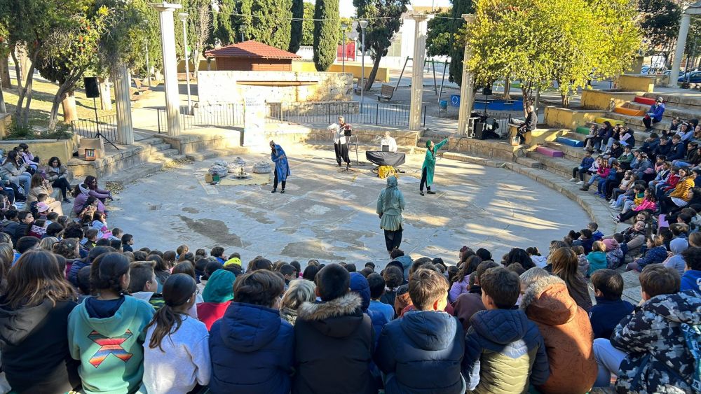 La plaza Rei en Jaume se convierte en escenario de ‘Sherezade’ y en punto de encuentro para la reflexión entre el alumnado de las dos escuelas públicas