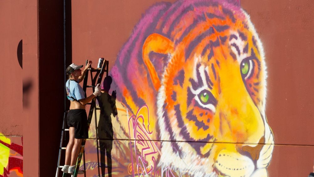 Una artista pinta un mural en la anterior edición del Godejam