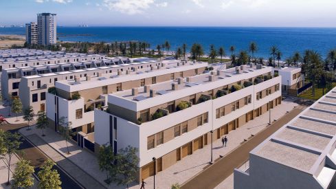 Cada villa está distribuida en tres plantas, que incluyen dormitorios, garaje privado, salón comedor con cocina integrada y terraza exterior. Esta promoción se distingue por su diseño moderno, luminoso y con acabados de alta calidad, proporcionando un espacio único junto al mar.