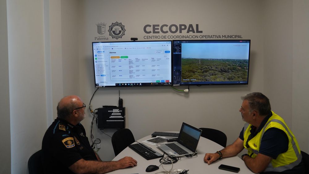 Este sistema se complementa con una cámara térmica de última generación instalada en la Torre de La Vallesa, además de cámaras de vigilancia en puntos estratégicos de la zona. Toda esta red tecnológica monitoriza en tiempo real el riesgo de incendio diario, en función de parámetros como la temperatura, el viento o la humedad, y está conectada a la Central de la Policía Local, cuyos efectivos de la Unidad de Medio Ambiente coordinan y dirigen esta vigilancia las 24 horas del día para garantizar una respuesta inmediata de los servicios de emergencia en caso necesario.