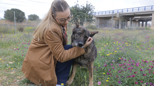 Johana Gómez con Jiri, una de las peludas sénior del Refugio de Animales de Paterna