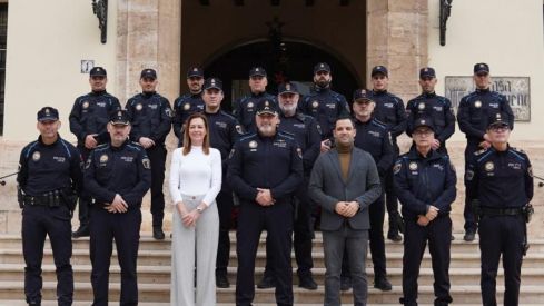 Imagen de archivo Sagredo y Nuria Campos junto a Policía Local de Paterna