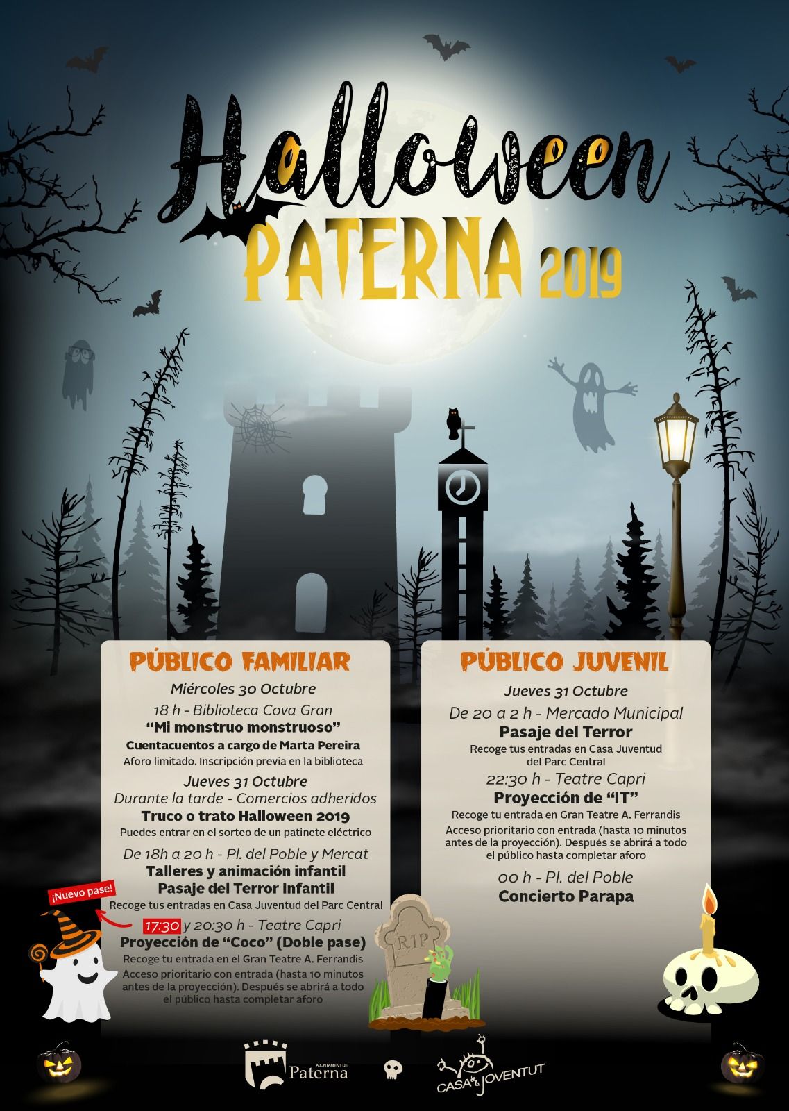 El Ayuntamiento de Paterna ha dado a conocer el programa de actividades planeadas para celebrar la fiesta de Halloween el próximo 31 de octubre.