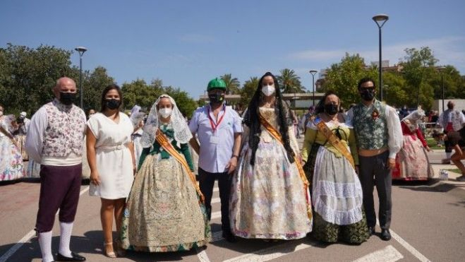 Paterna ha rendido homenaje a uno de sus vecinos más ilustres en el mundo de la pólvora, Juan Picazo López, más conocido por todos como "el Algarrobo" o el "hombre del casco verde".Aprovechando la celebración de las Fallas en Paterna, y un poco antes de que el Algarrobo diera inicio a la espectacular mascletà celebrada en el Parc que se disparó ayer en honor a San José, Juan Picazo recibió de manos del Alcalde Juan Antonio Sagredo un socarrat en reconocimiento a su trayectoria y a su vinculación con el fuego.De esta forma, el Ayuntamiento de Paterna junto con Junta Local Fallera quisieron rendir homenaje a este paternero amante del fuego y la pirotecnia, que desde el año 1998 ha trabajado en el Ayuntamiento de Valencia como Jefe de Mantenimiento de exteriores y Jefe de Coordinación de equipo para los actos celebrados durante todo el año en la ciudad de Valencia, entre los que se encuentran los actos falleros.Juan Picazo ha sido el encargado del montaje de los perímetros de seguridad en cada festividad en la que hay pólvora, garantizando la máxima seguridad de trabajadores/as y asistentes.El Algarrobo lleva 18 años poniéndose frente al balcón del Ayuntamiento de Valencia antes de cada una de las mascletàs, mirando atento su reloj sin apenas parpadear, una vez que está todo está preparado, todos los perímetros supervisados y a punto de empezar el espectáculo de la pólvora.Cuando el reloj del Algarrobo marca las 14:00 horas, se pone el casco verde, gesto que sirve de señal para que las Falleras Mayores sepan que ya pueden decir las palabras "senyor pirotecnic pot començar la mascletà".Éste fue el protocolo que volvió a repetir ayer, aunque esta vez en su casa, Paterna, ante sus vecinos y vecinas y el mundo fallero paternero, que celebraba con una mascletà, el día grande de estas fiestas realizadas excepcionalmente del 8 al 12 de septiembre, siguiendo todas las medidas y protocolos anticovid vigentes y que culminaron anoche con la tradicional cremà de los monumentos.