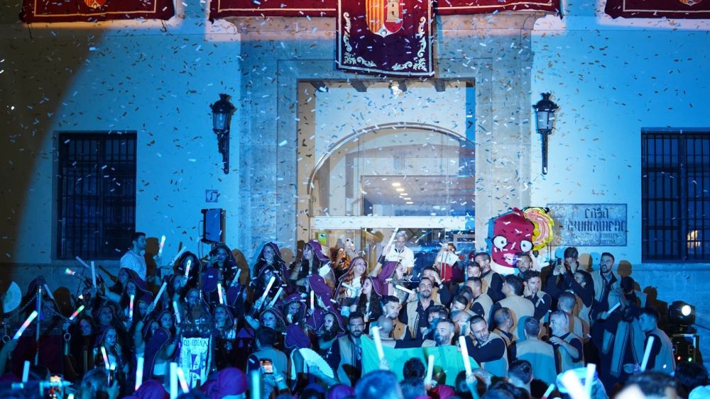 Tras el pregón, las dos capitanías, la comparsa Abbasies, en el bando moro, y la comparsa Guardianas de Sibila, al frente del bando cristiano, junto con la Presidenta de la Federación Intercomparsas, Mª Ángeles Salvador, procedieron al izado de las banderas. A continuación, se celebró la tradicional Entraeta de las 26 comparsas, 13 moras y 13 cristianas.