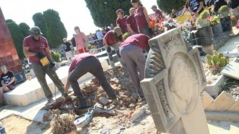 La lucha por recuperar la dignidad de las familias de fusilados durante el Franquismo continúa su camino. Hoy se ha dado un paso más en la recuperación de la memoria histórica, ya que se han iniciado las excavaciones para la exhumación de la fosa 111 del cementerio de Paterna, donde se estima que puede haber unos 150 cuerpos enterrados. Esta exhumación es el resultado de un largo proceso de más de cuatro años de trámites y papeleo para conseguir los permisos necesarios. Vicen Juan es la secretaria de la Asociación de Familiares de Víctimas del Franquismo de la fosa 111 de Paterna y su abuelo es uno de los fusilados por el régimen que están enterrados en dicha fosa. "Para mí, la exhumación que hoy se inicia significa cerrar una herida que lleva 80 años abierta", cuenta Vicen, cuyo único deseo es "poder identificarlo y poder enterrarlo" junto a su abuela y su madre en el cementerio de Manises. Eso sí, le da lástima que su madre, fallecida hace dos años, no esté presente en este momento para poder observar cómo se hace justicia.