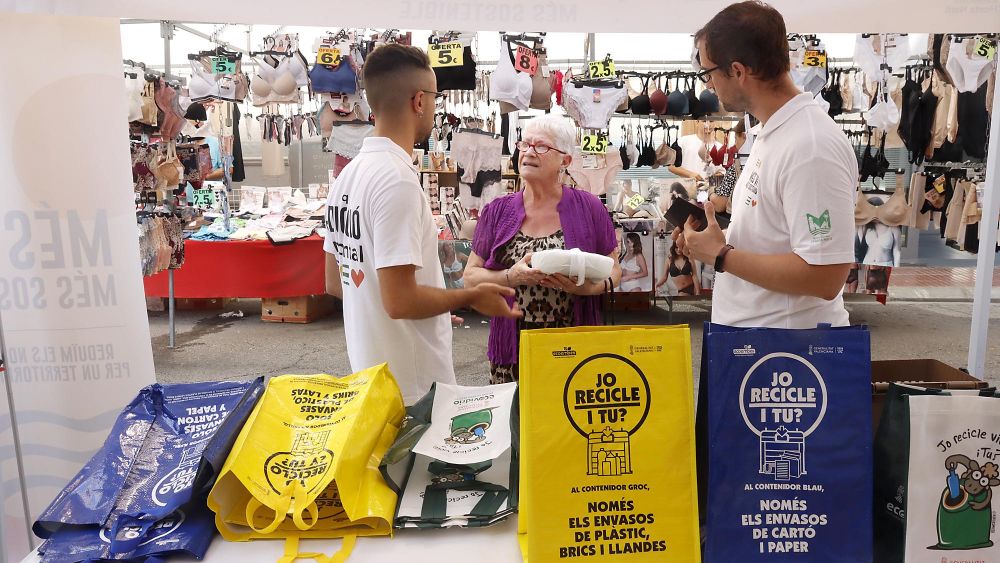 Paco Salavert, concejal de Medio Ambiente, ha estado junto con el equipo de Educación Ambiental de la Mancomunitat para informar al vecindario de las ventajas de reciclar correctamente. «Lo más importante es reducir los residuos que creamos, es algo que exige la legislación actual y a lo que estamos obligados», explica el concejal. «De hecho, cuantos más residuos generamos, más pagamos».